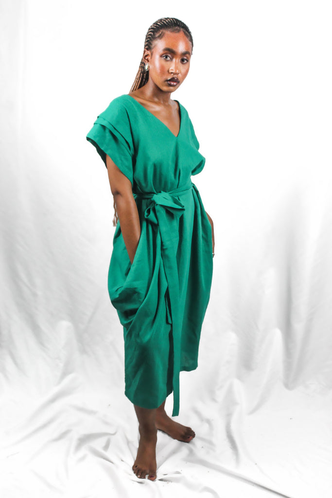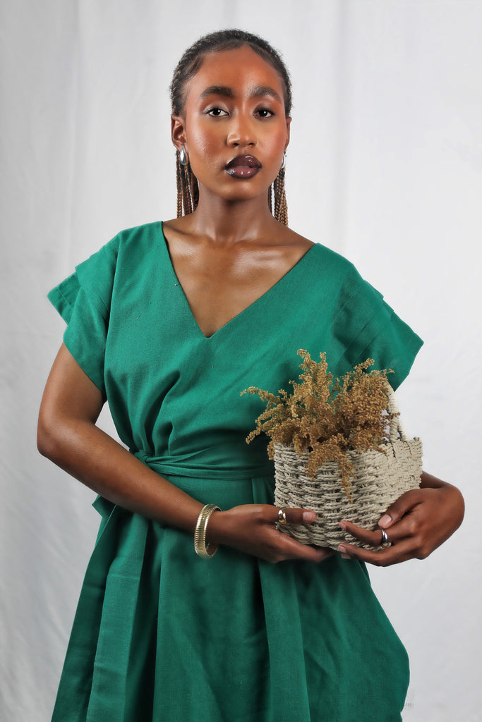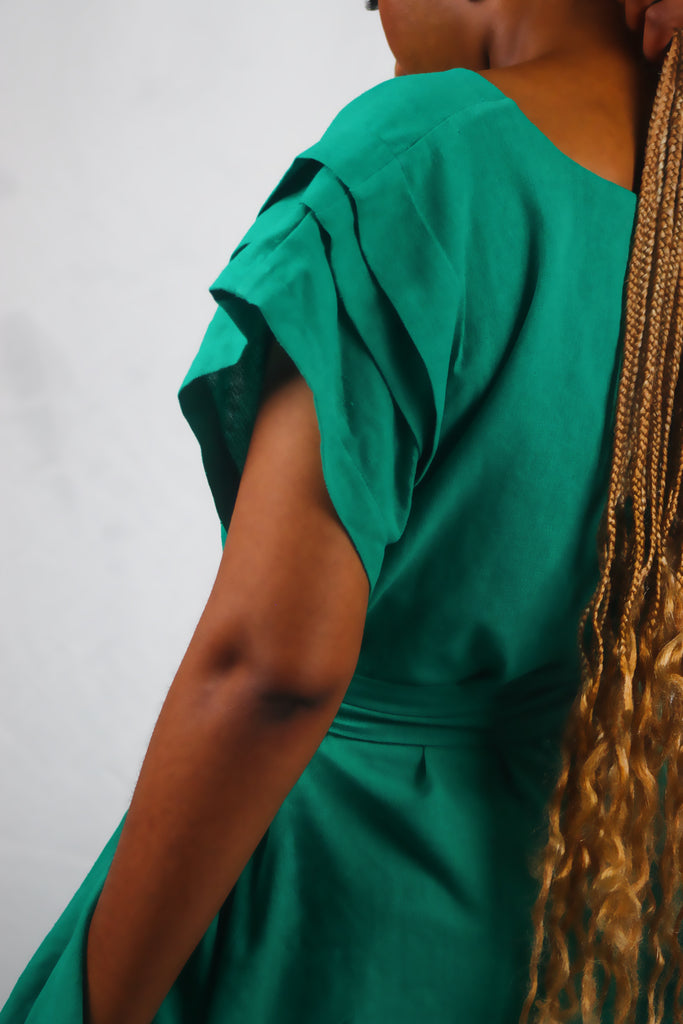 Embrace effortless charm with the Pula Green dress, featuring wide hips and pleated shoulders that add a playful flair. Crafted from breathable linen and cinched with a stylish belt, it’s perfect for twirling through sunny days with comfort and confidence.