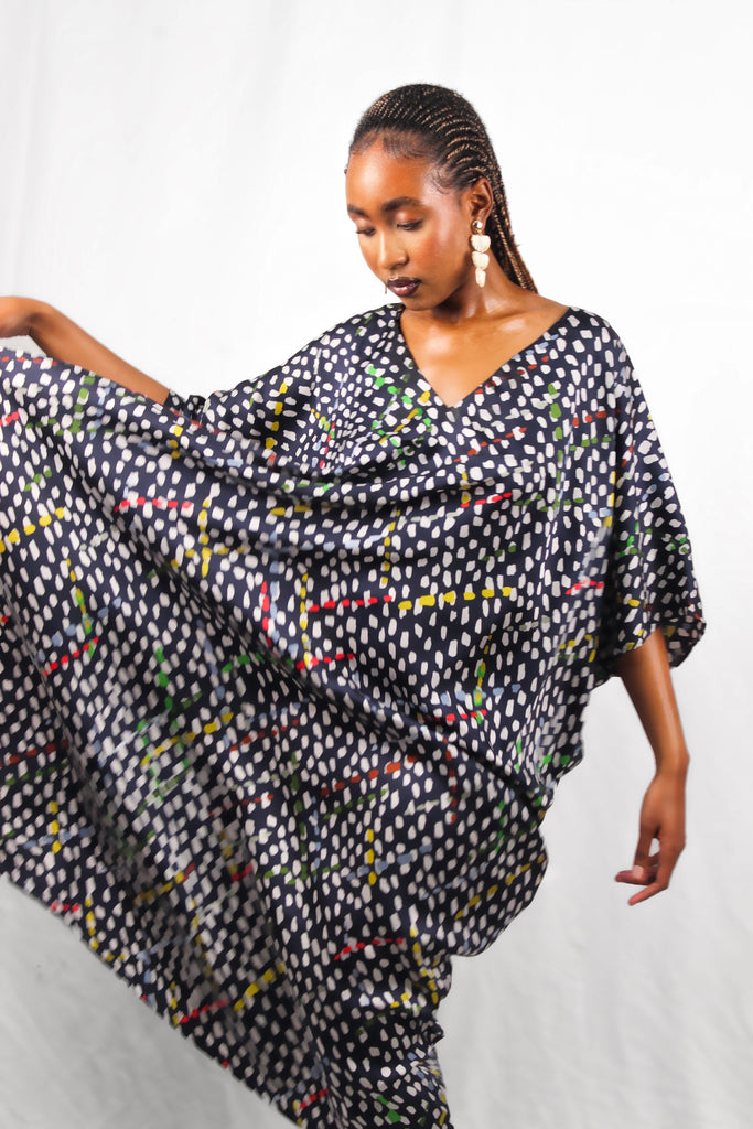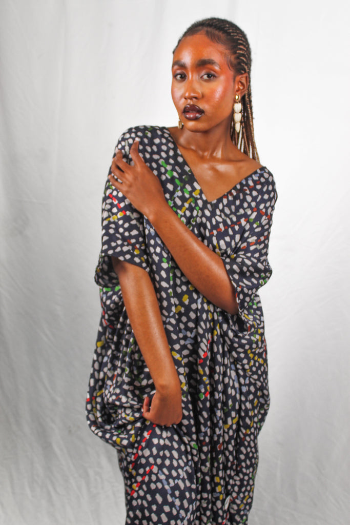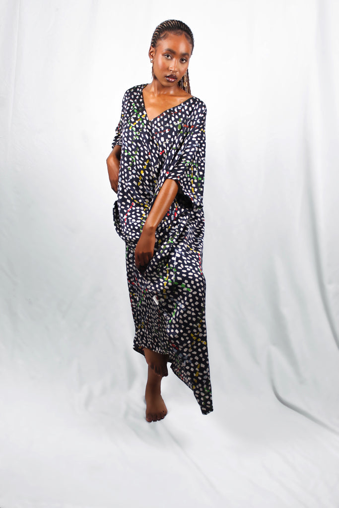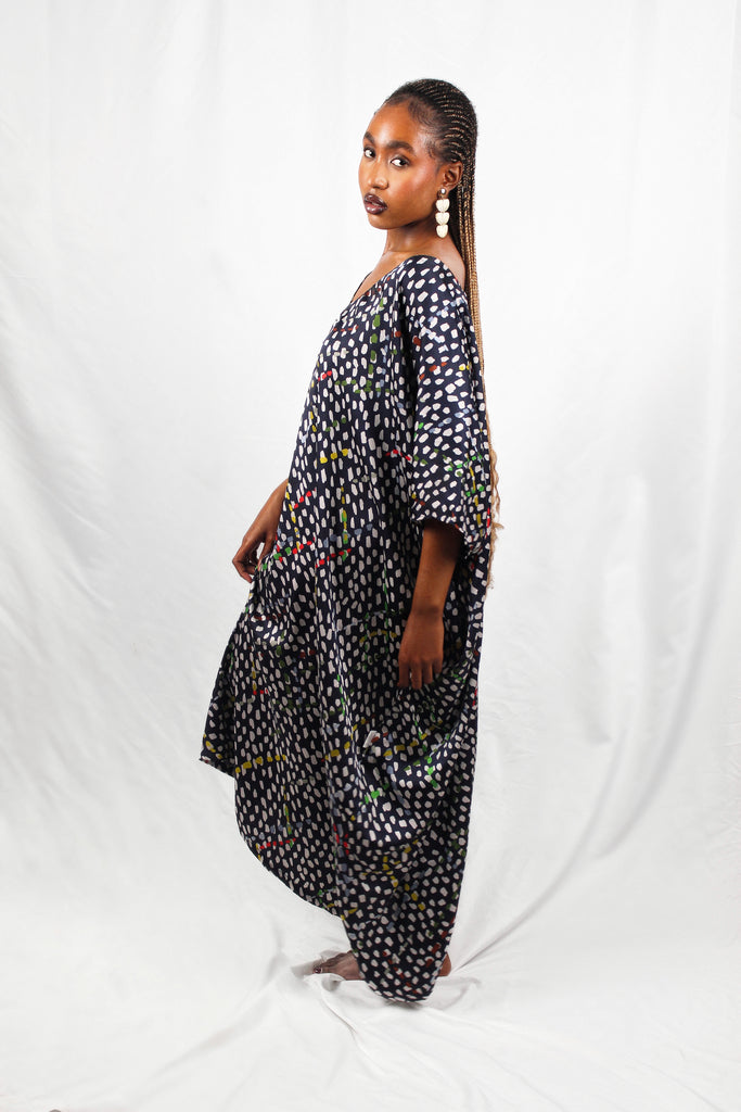 Experience elegance with the Sesha dress, crafted from silky cotton that drapes effortlessly off the body. Its flowy silhouette and delicate dotted pattern create a refined, regal appearance perfect for sophisticated occasions. This dress combines comfort with timeless style, making it a versatile addition to your wardrobe.